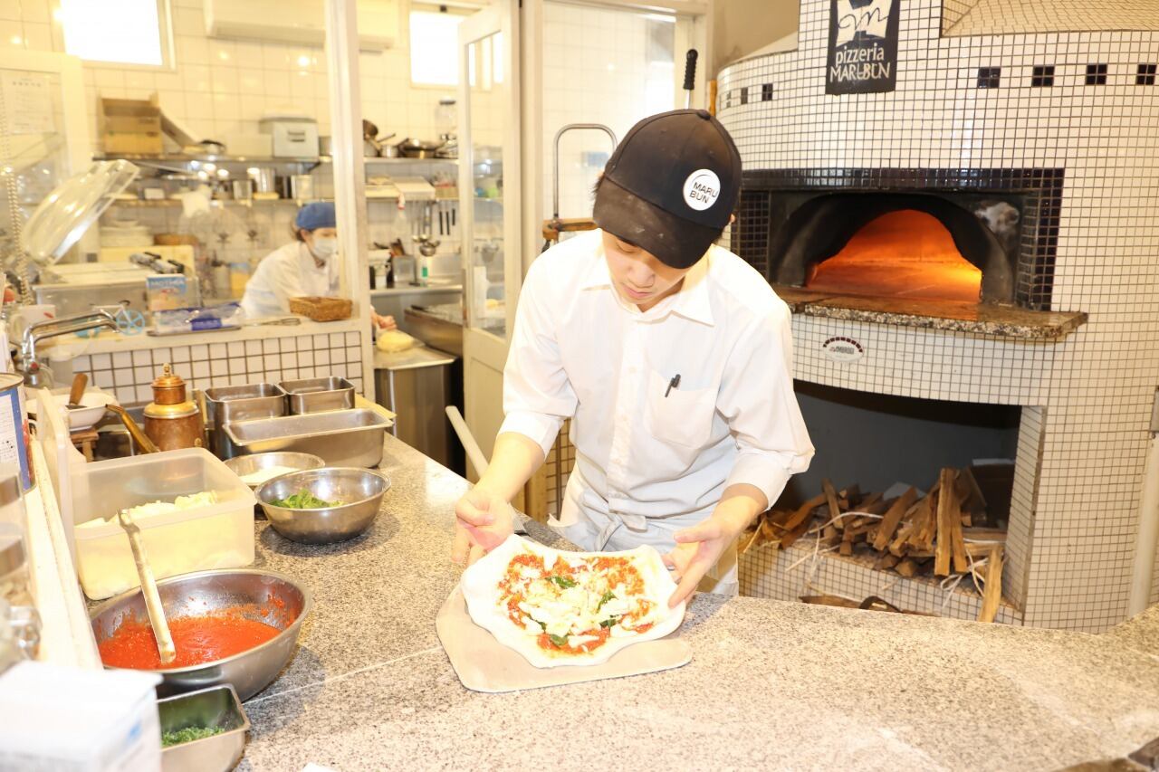 イタリアから取り寄せたピッツァ専用の薪窯をしようし、400~500℃で一気に焼き上げます。